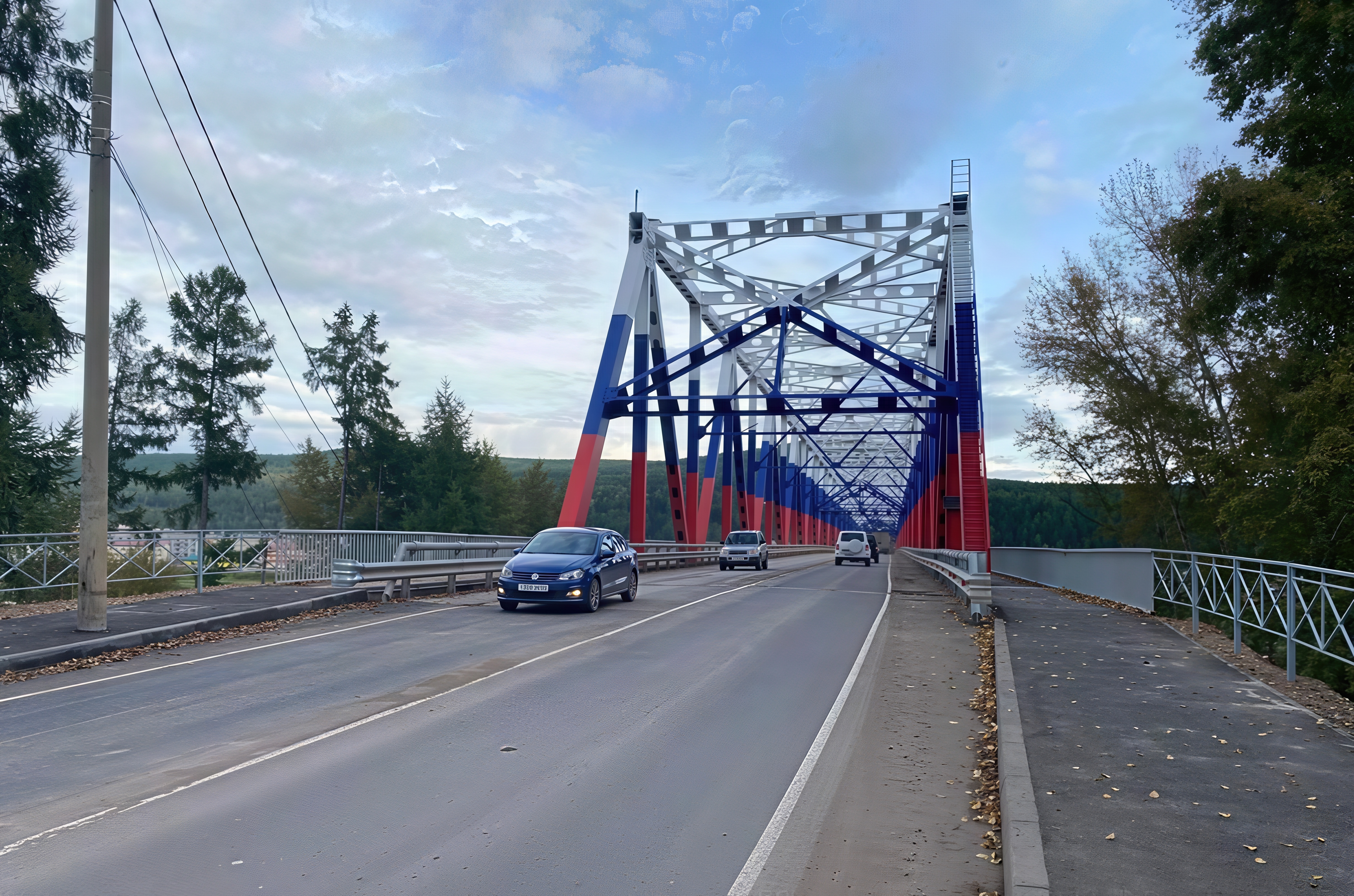 В процессе строительно-монтажных работ специалисты заменили плиты проезжей части, отремонтировали береговые и промежуточные опоры, устроили асфальтобетонное покрытие как на самом мосту, так и на подходах к нему. Кроме того, выполнили окраску пролетных строений в цвета российского флага и провели полное обустройство: установлены новые барьерные ограждения и системы наружного освещения для безопасности пешеходов и автомобилистов, нанесена дорожная разметка, установлены знаки.