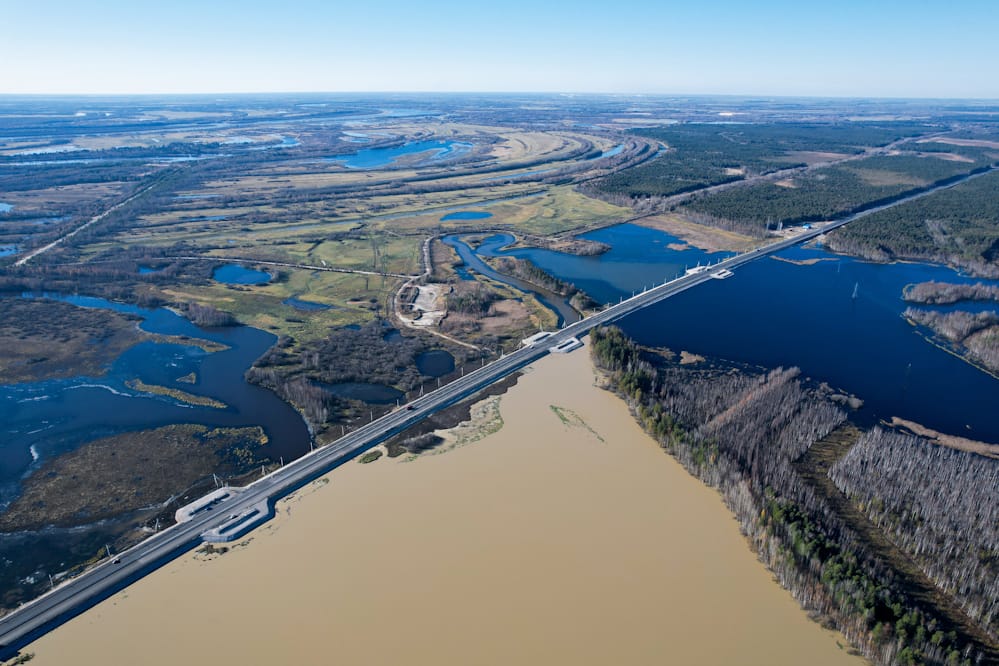 Одним из самых масштабных проектов минувшего года стало строительство уникального мостового перехода через реку Обь в районе города Сургута в Ханты-Мансийском автономном округе — Югре. Это весомый вклад в масштабную работу по обеспечению транспортной доступности опорных населенных пунктов и связности территорий нашей страны. Отметим, что в целом проект предусматривал возведение моста через реку Обь протяженностью порядка 1,8 тыс. пог. м, а также трех путепроводов, четырех малых мостов и свыше 43 км автодорог.