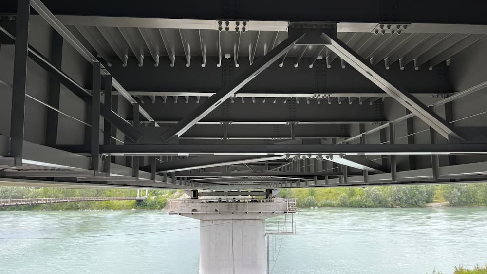В 2025 году проведена надвижка пролетного строения, а ранее были возведены опоры. На мосту и подходах устроен нижний слой асфальтобетонного покрытия, проведены коммуникации, водоотводы, освещение. В текущем году будут обустроены пешеходные, барьерные ограждения и элементы, обеспечивающие транспортную безопасность.